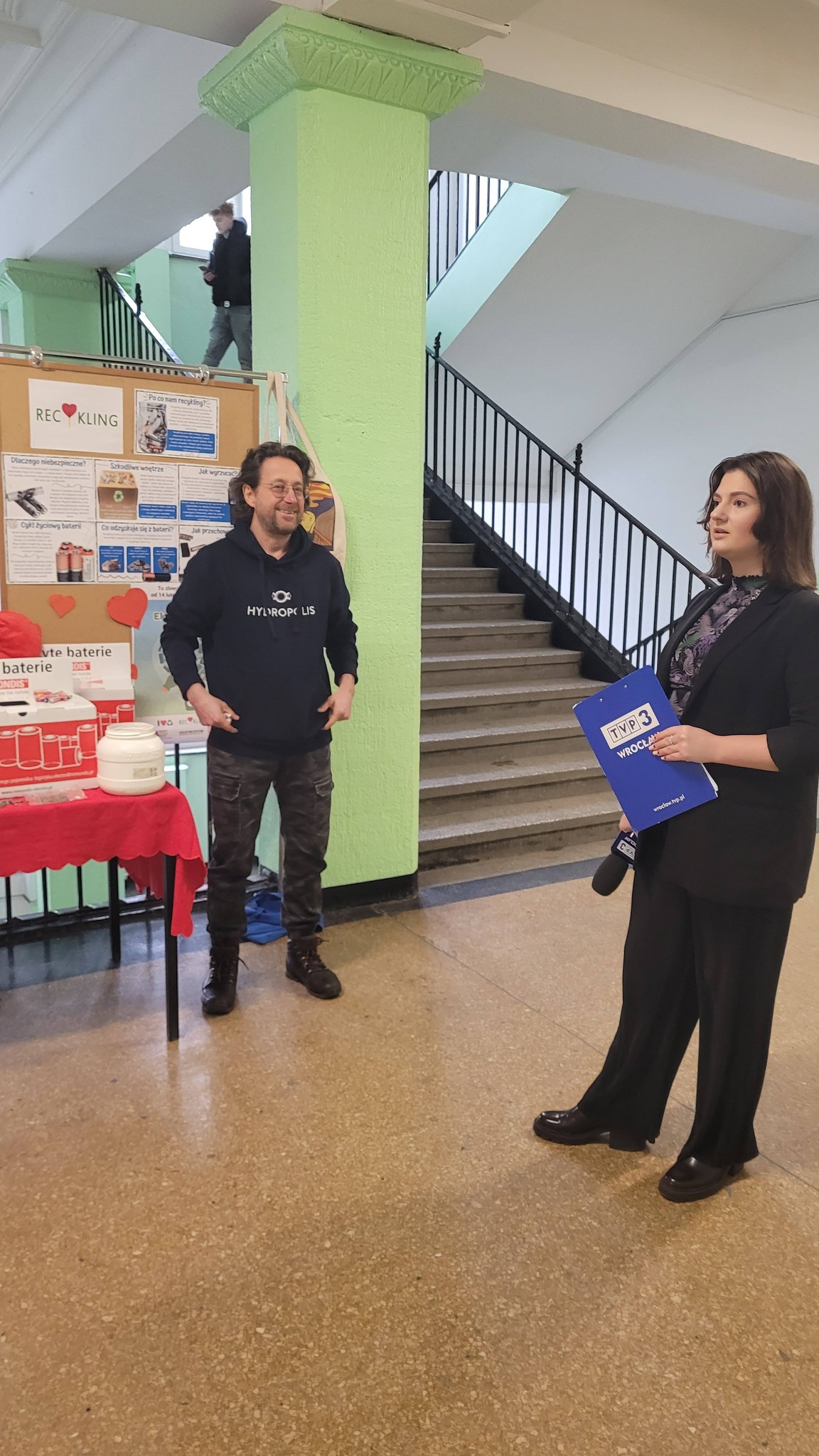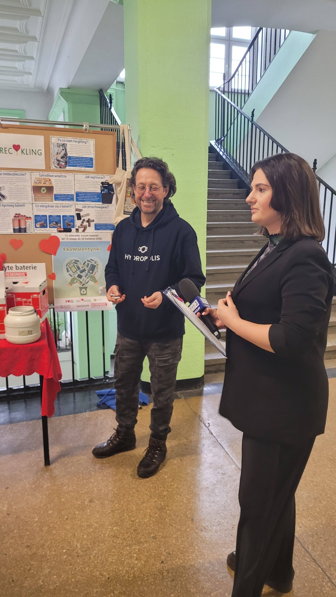 Jutro „Dzień baterii”, a już dzisiaj gościliśmy w naszej szkole organizatora ogólnopolskiej akcji zbiórki baterii EkoWalentynki p. Dominik Dobrowolski wraz z ekipą z Fakty TVP3 Wrocław.