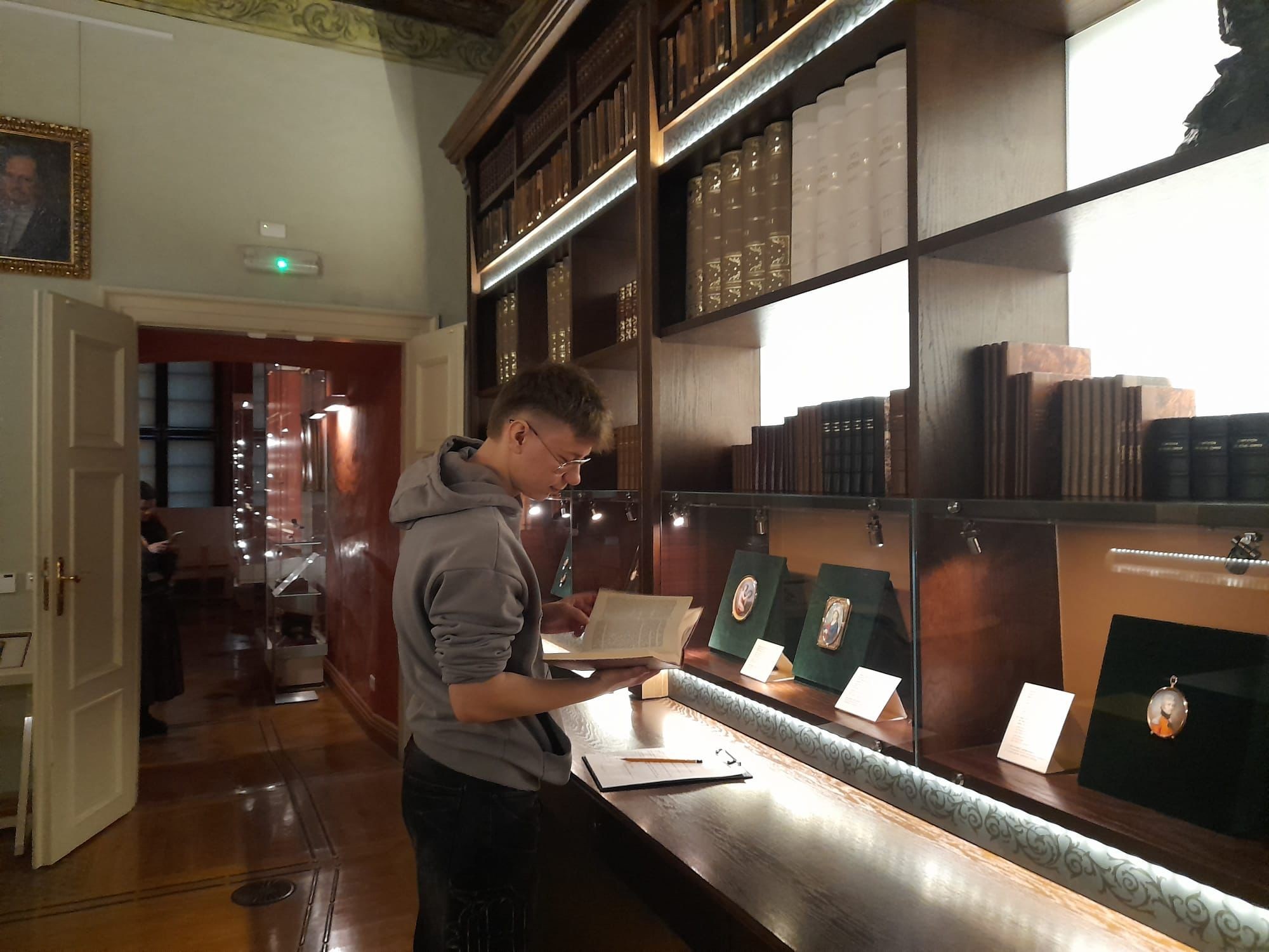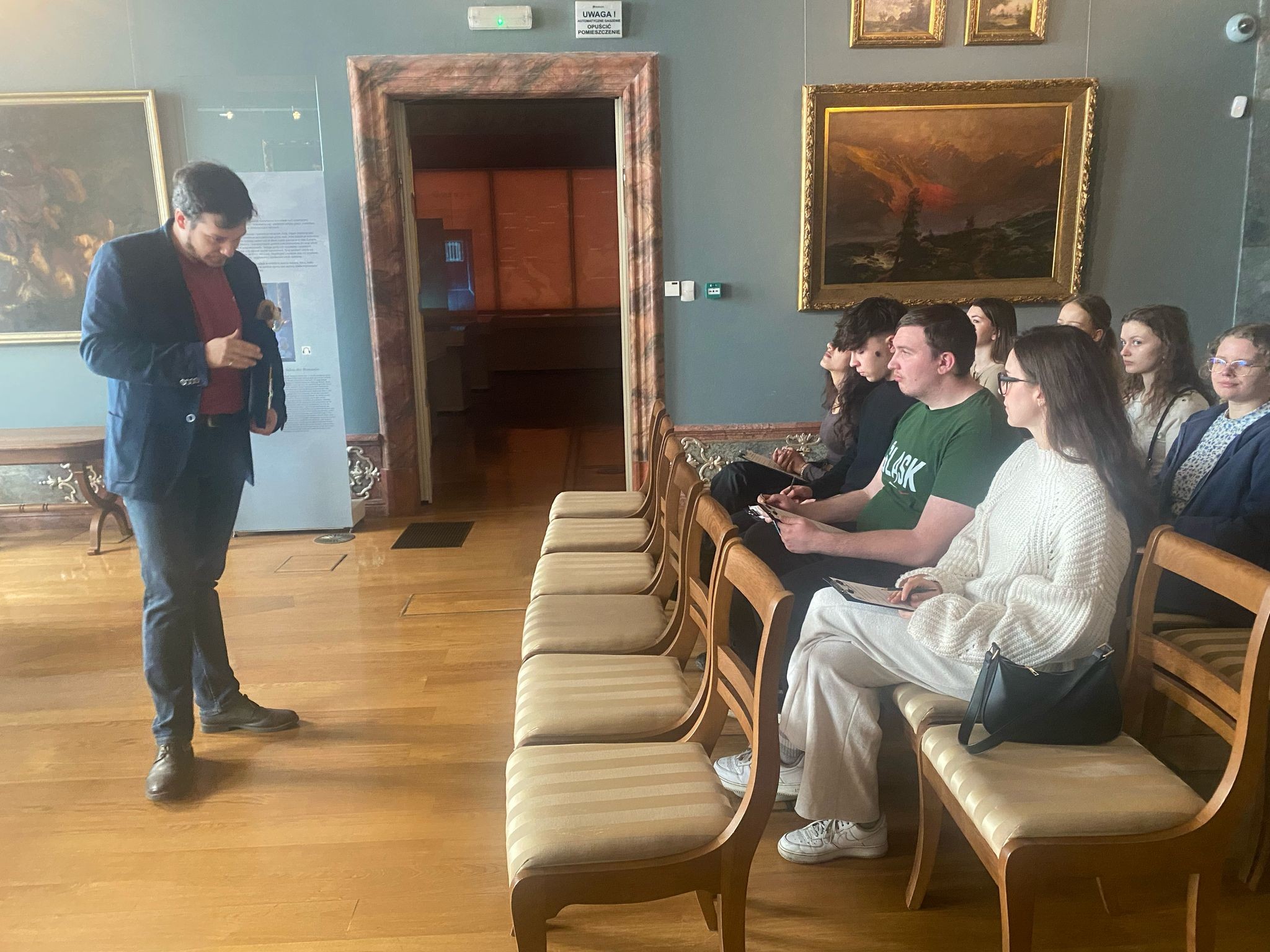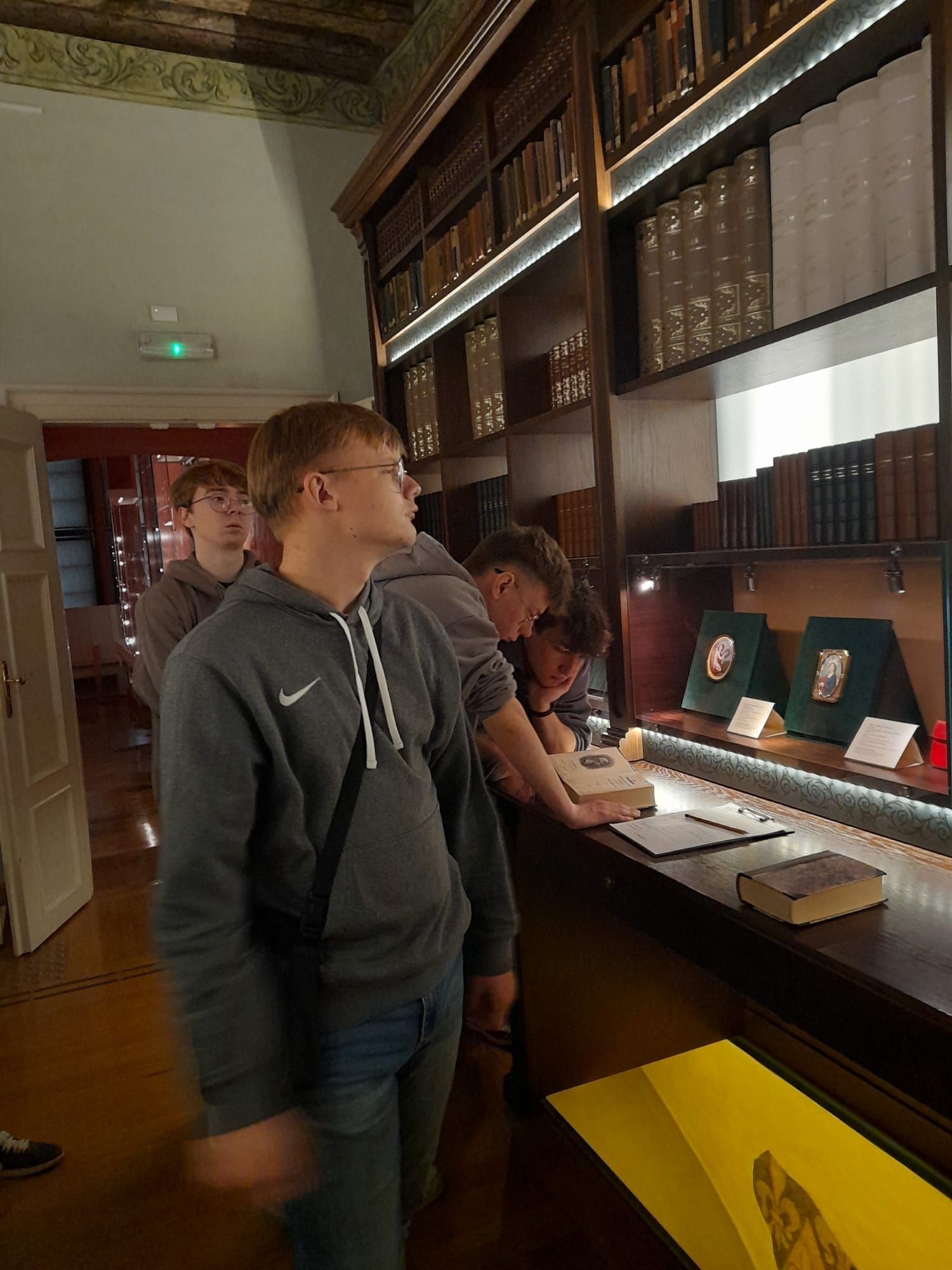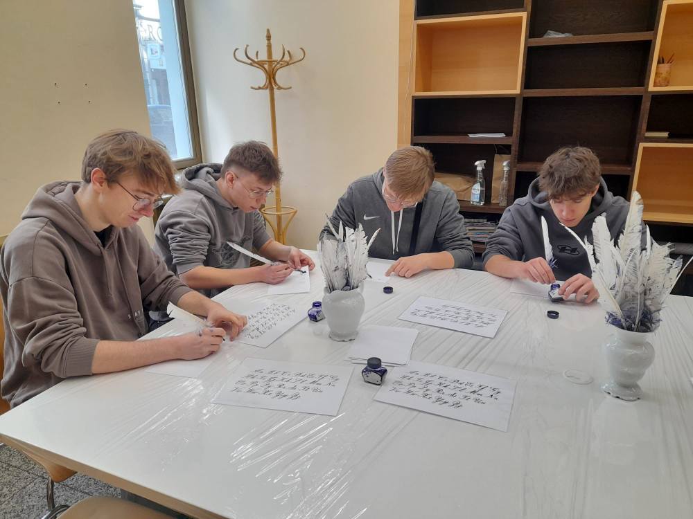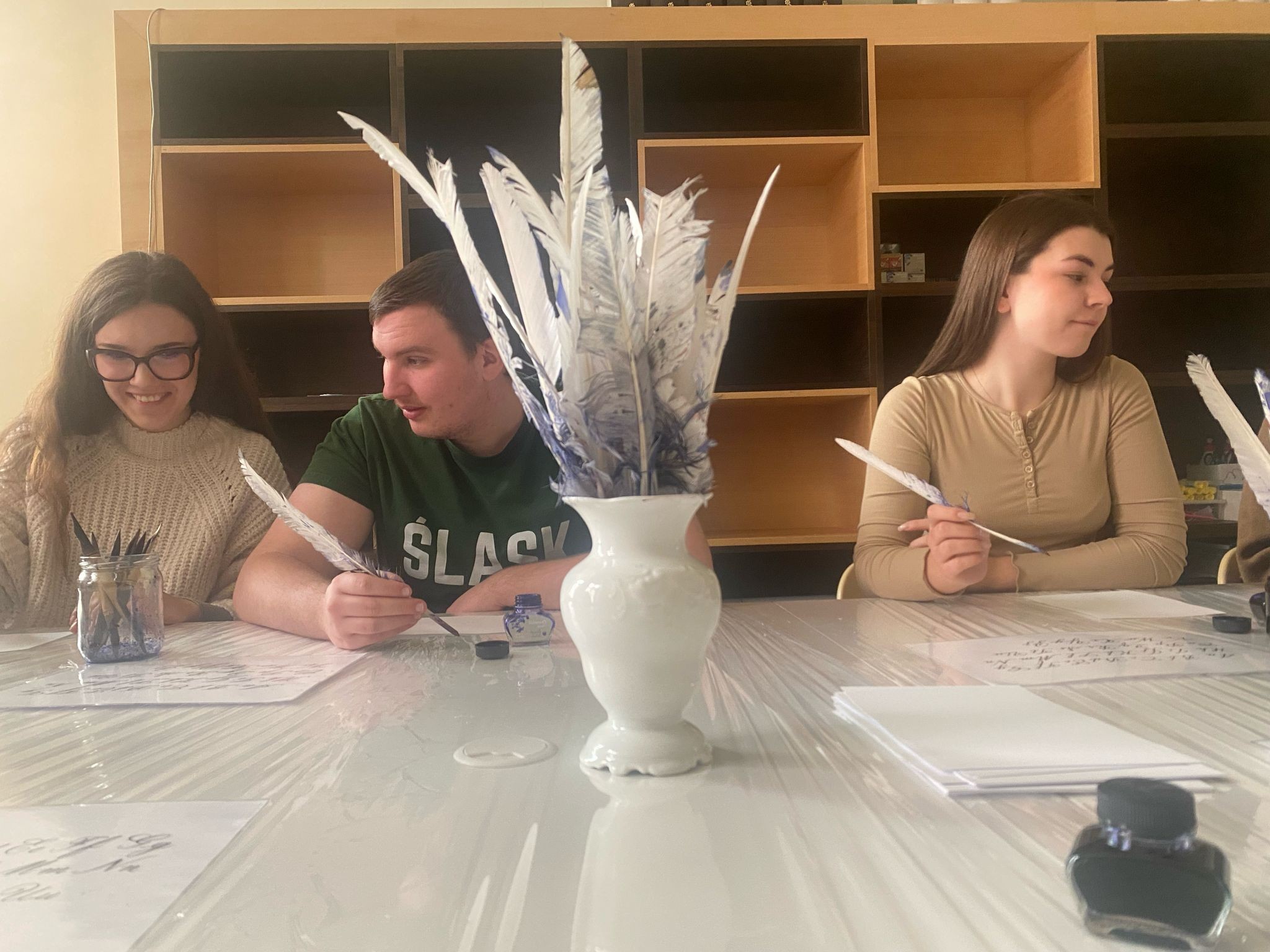 Na szlaku przedmaturalnych powtórek klasa 5d odwiedziła Muzeum Pana Tadeusza. W gościnnych i stylowych wnętrzach kamienicy Pod Złotym Słońcem zgłębialiśmy tajniki niełatwego losu romantyka, poznaliśmy historię rękopisu Pana Tadeusza oraz ćwiczyliśmy trudną sztukę kaligrafii.
