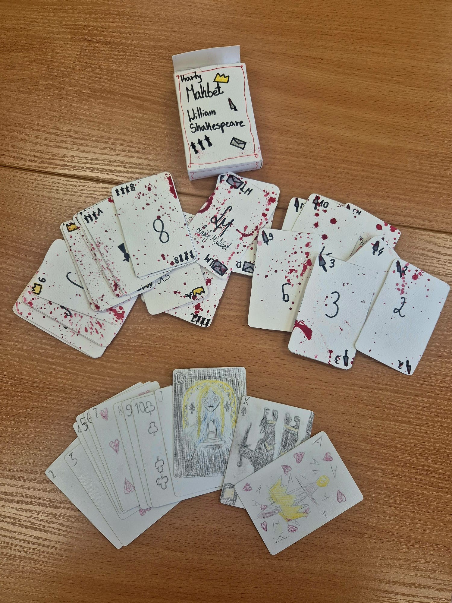 – powstały również talie klasycznych kart ozdobione motywami z Makbeta (autorzy: Sandra Jankowska, Kamila Sękowska, Maja Bagińska oraz Jan Białek – 2f)