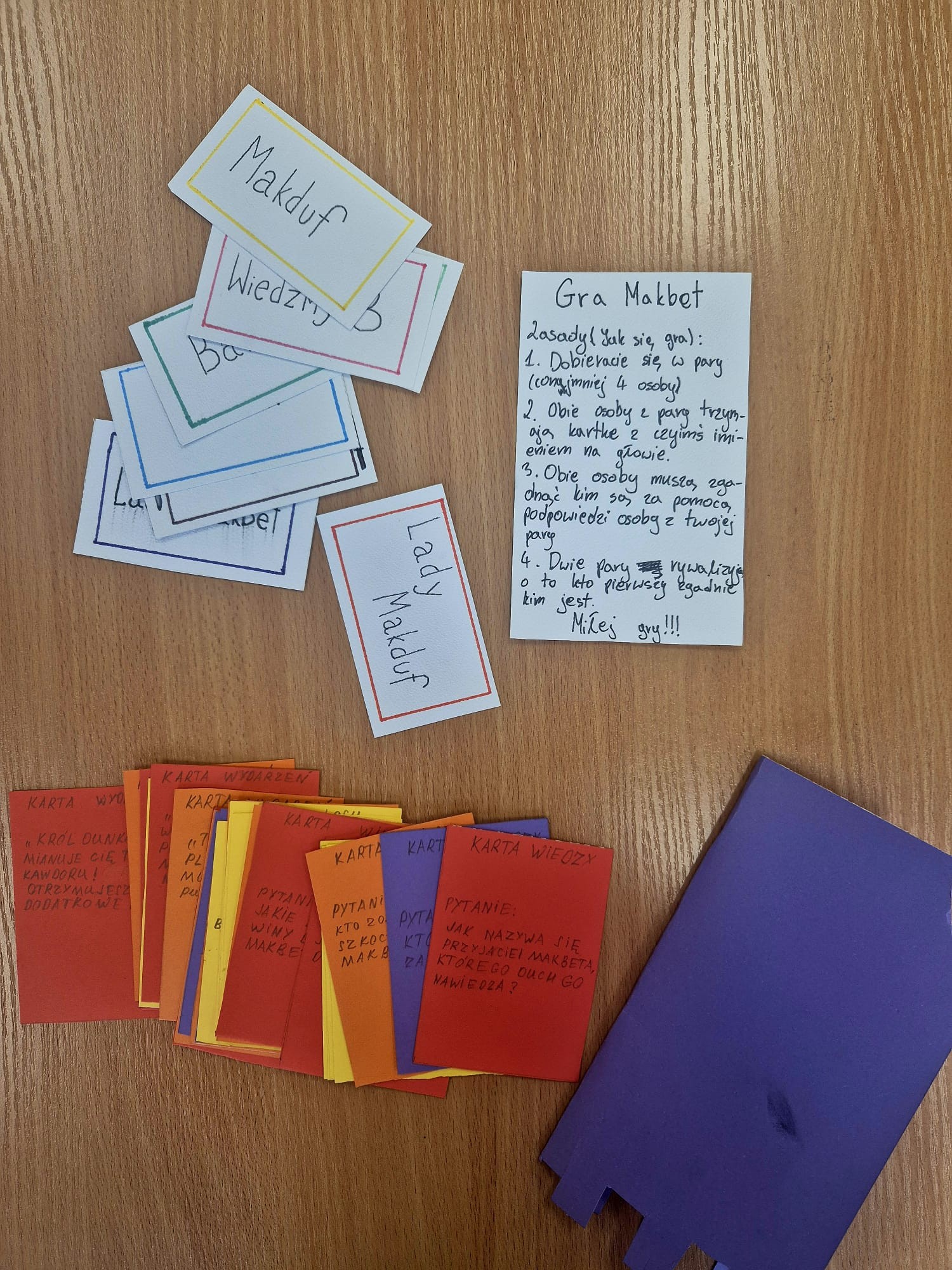 – grę karcianą „Kim jestem? Makbet” (autorzy” Szymon Kaczmarek i Vitalii kniaz 2c)