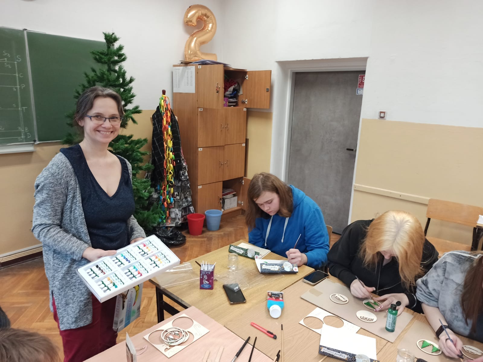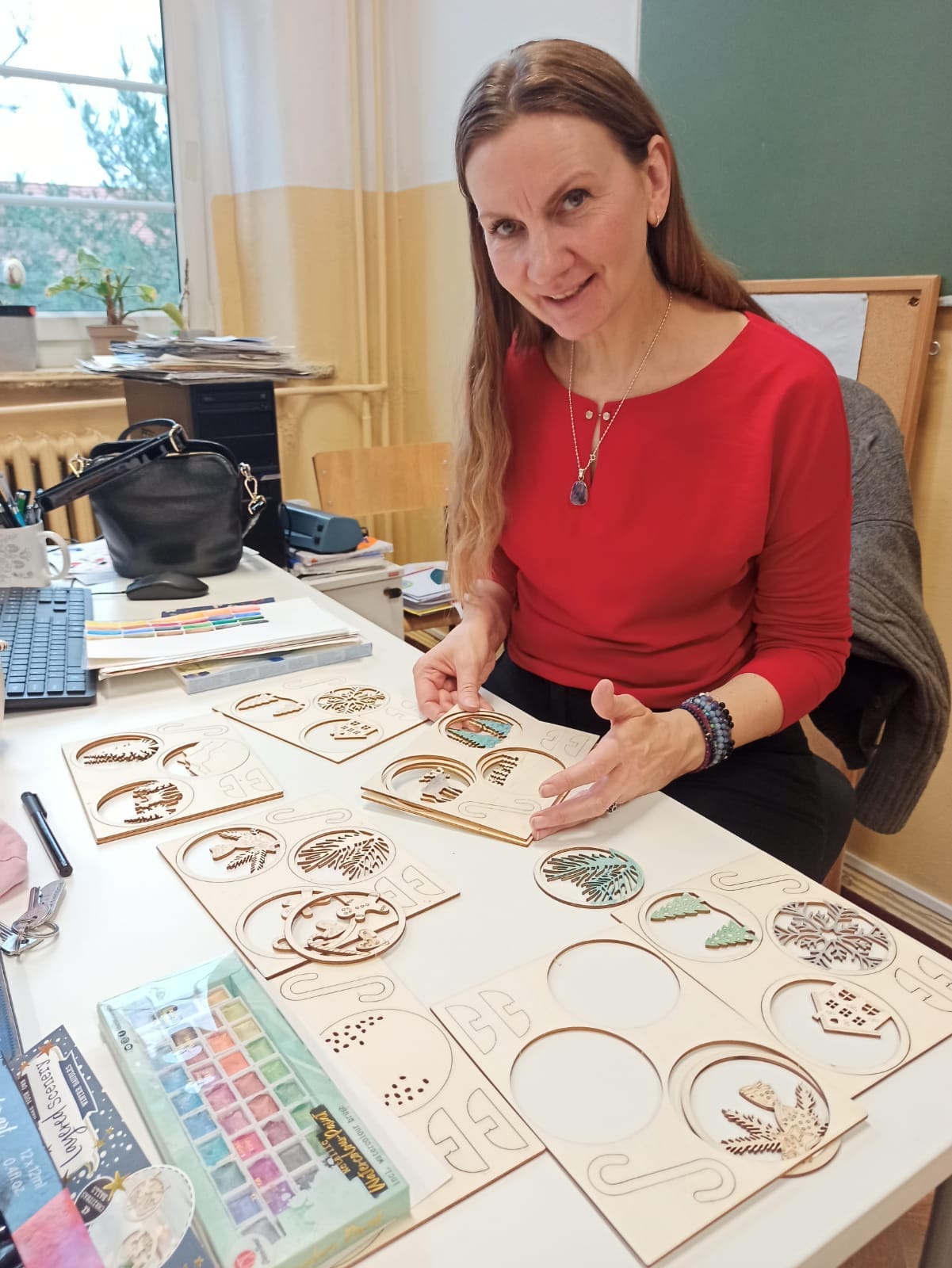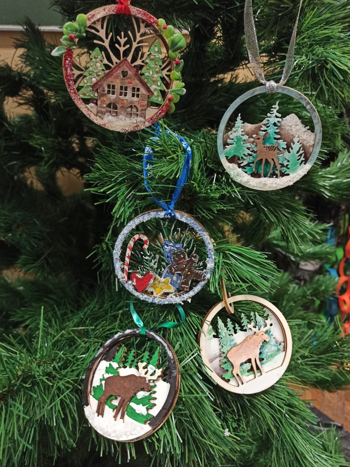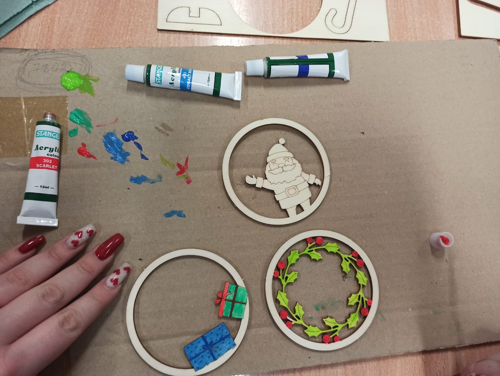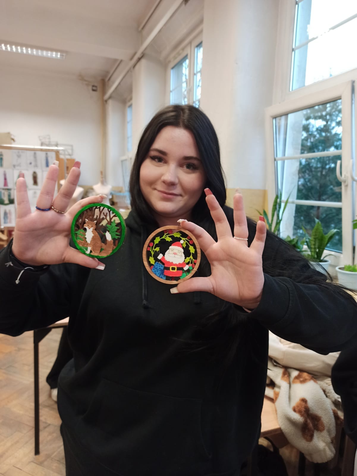 Dziś po raz ostatni w tym roku spotkaliśmy się na świątecznych warsztatach 🎄🤶🌲 Ozdabialiśmy z p. Agnieszką Berkowską i p. Agnieszką Herzog nietypowe, bo drewniane, bombki 🖌️🎨 Fantastyczna sprawa, zobaczcie efekty! 😉☃️🦌🎄