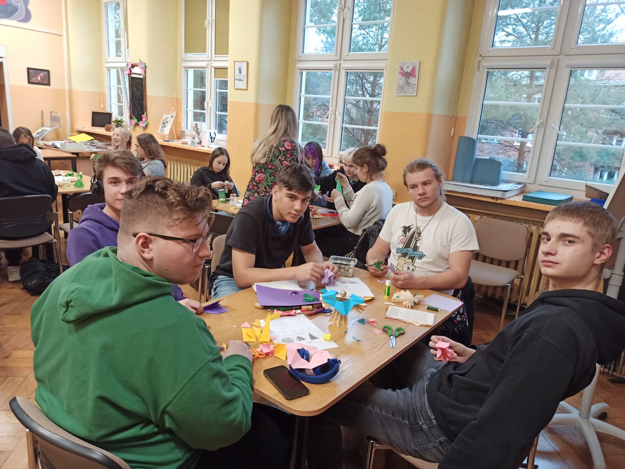 Misternie wykonana prze uczennice II e : Darynę, Sofiię, Anghelinę, Khrystynę . Kilka tygodni trwało skrupulatne wycinanie z bibuły każdego płatka czerwonej POISENCJI pod nadzorem Agnieszki Polańskiej. Efekt końcowy sami możecie podziwiać na szkolnym korytarzu. -