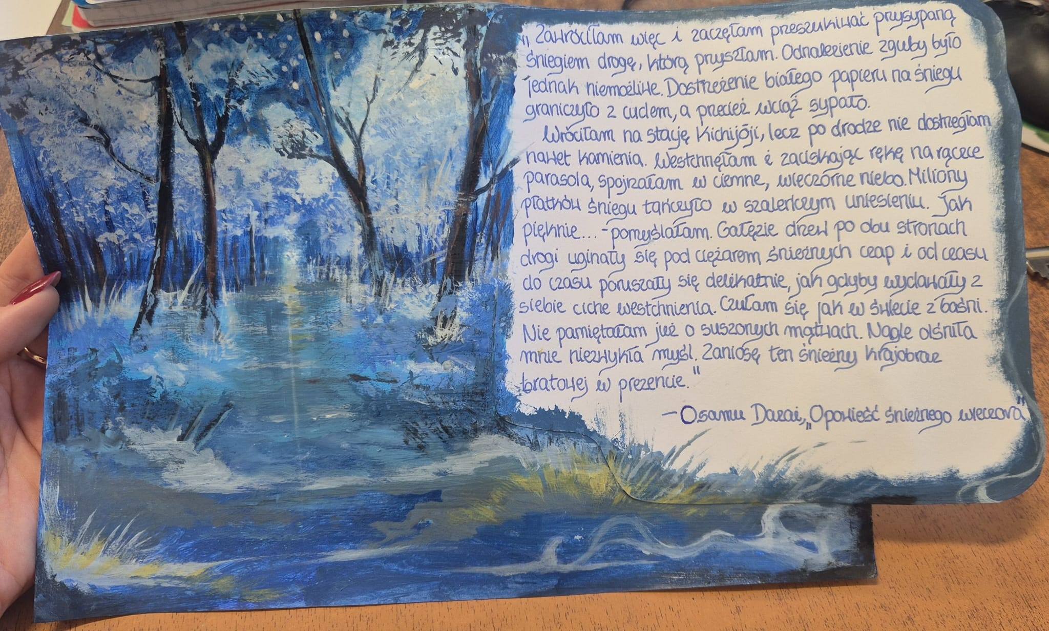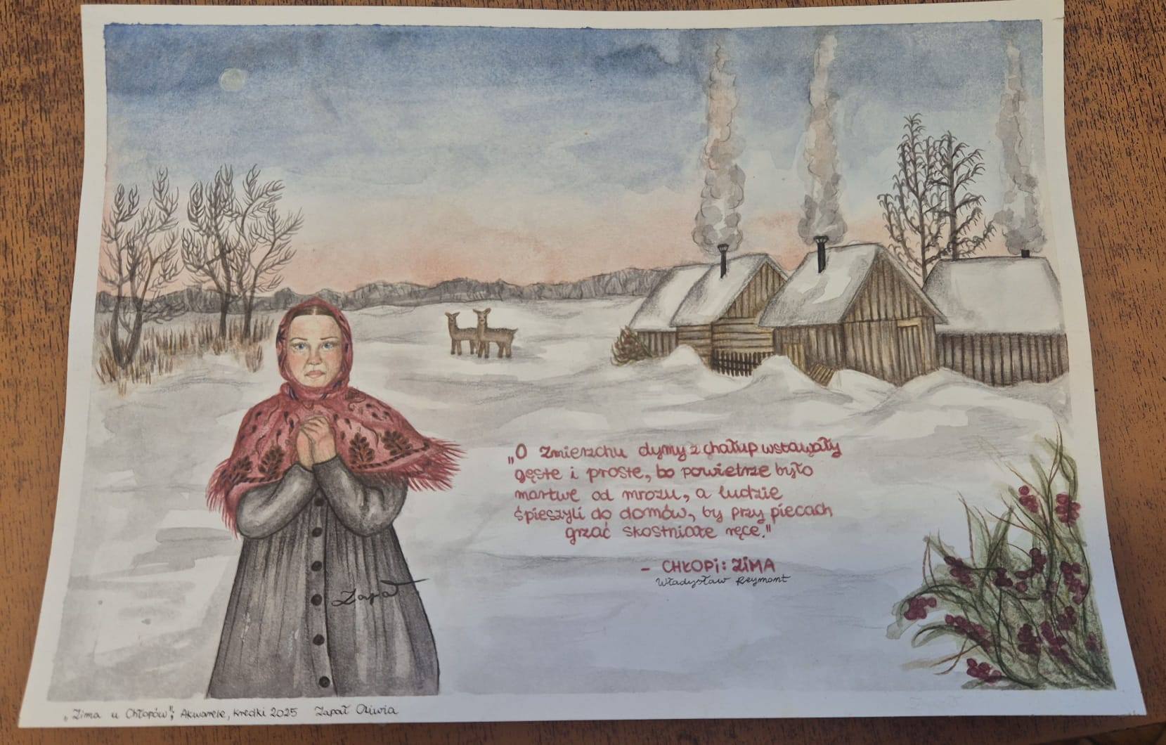 Uczniowie ZS1 stworzyli prace dotyczące obrazu zimy w literaturze. Na 1. piętrze można oglądać wystawę tych pięknych projektów.