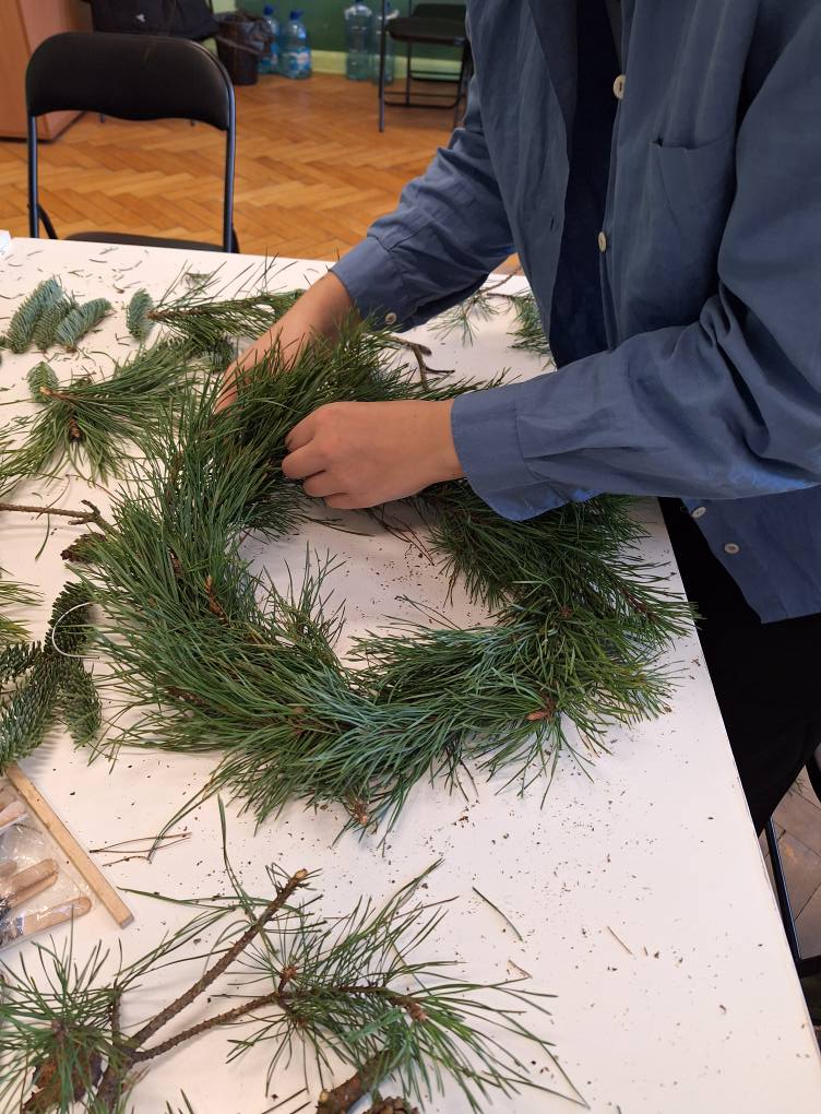 Warsztaty z wianków z igliwia prowadziła p. Anna Brakowska