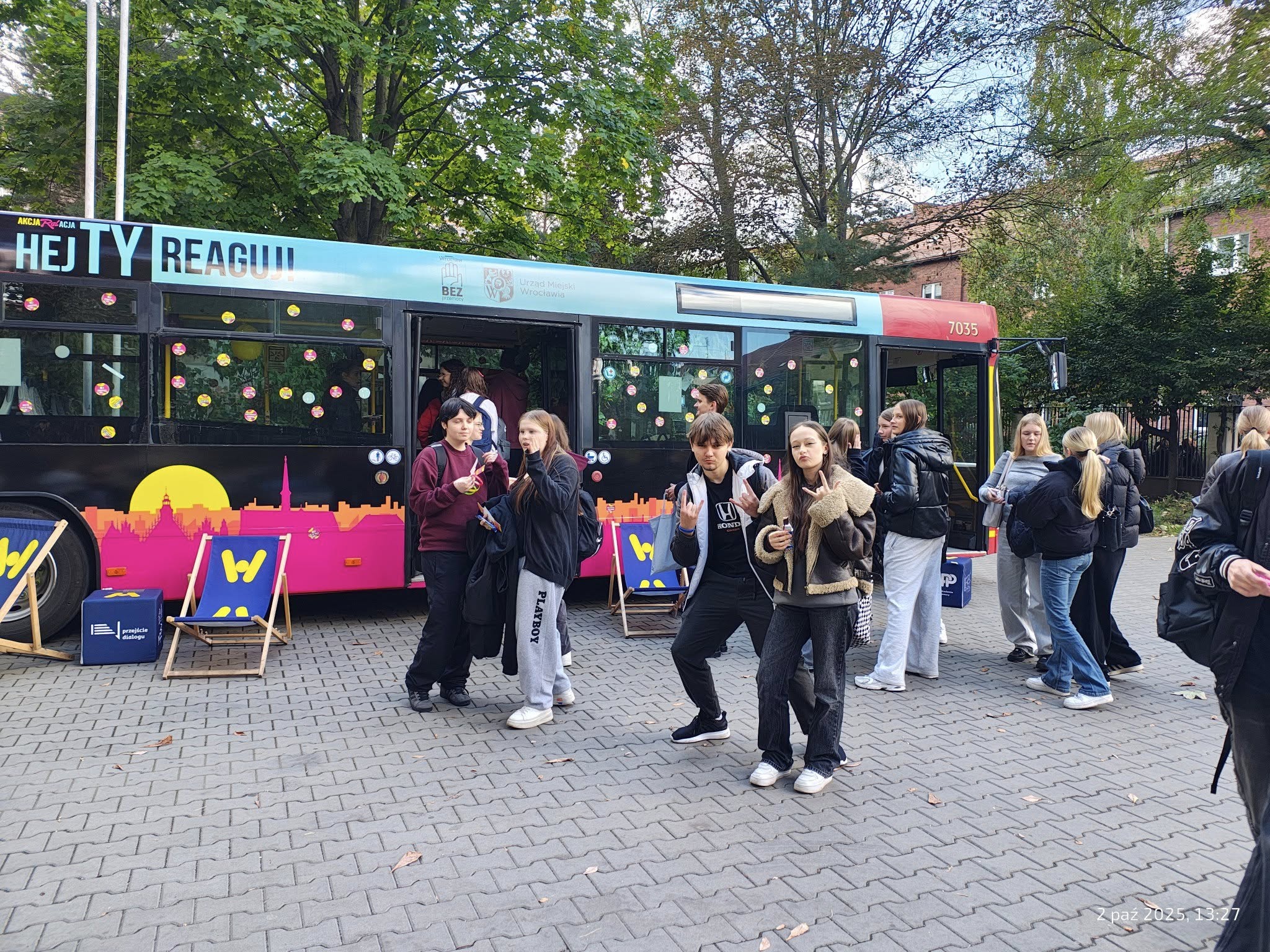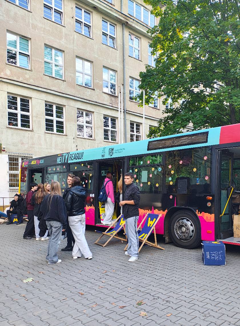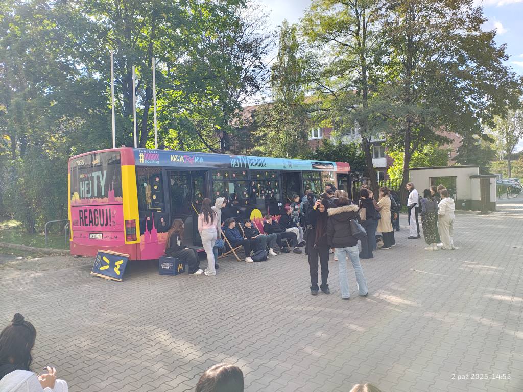 Dzisiaj na terenie naszej szkoły miała miejsce wyjątkowa inicjatywa!Odwiedził nas Autobus – STOP HEJT, w ramach kampanii „HejTy Reaguj!”Akcja cieszyła się dużym zainteresowaniem